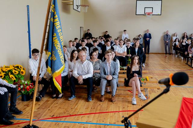 Po odśpiewaniu hymnu i przywitaniu gości, głos zabrał Dyrektor Stanisław Kłaniecki, który w ciepłych słowach podziękował absolwentom za ich zaangażowanie, pogratulował ukończenia szkoły oraz podkreślił, że zdobyte umiejętności i doświadczenie to solidne fundamenty, które otwierają drzwi do dalszego rozwoju zawodowego i osobistego. Zwrócił również uwagę na rolę rodziców w procesie edukacyjnym, podkreślając ich zaangażowanie i wsparcie.