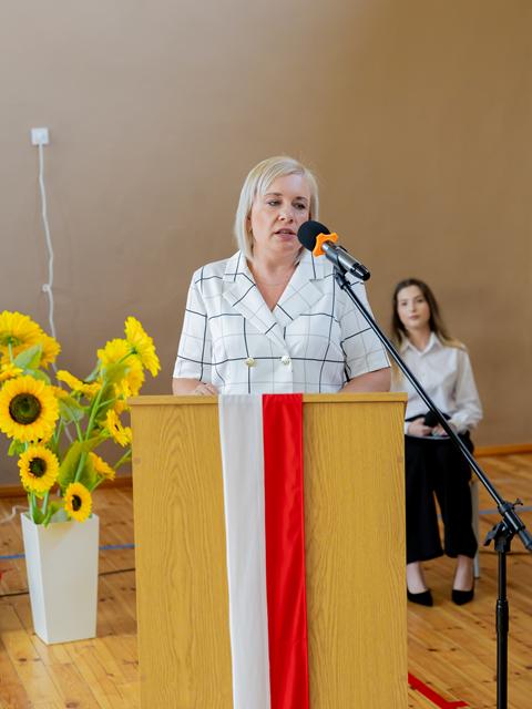 W imieniu Starosty oraz Zarządu Powiatu Słupeckiego, życzenia dla uczestników uroczystości przekazała Kierownik Wydziału Oświaty – Pani Justyna Lisowska.