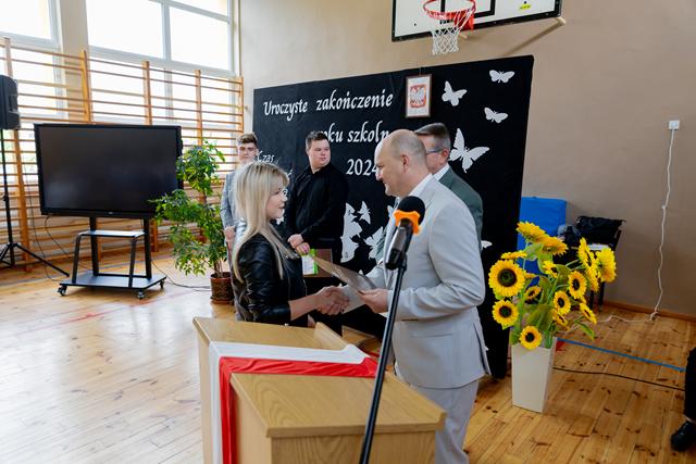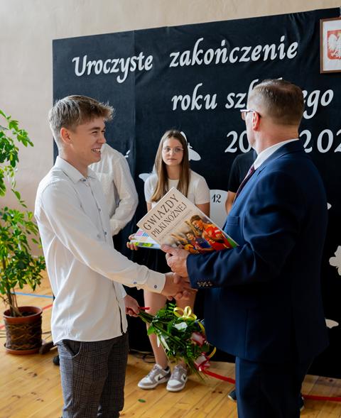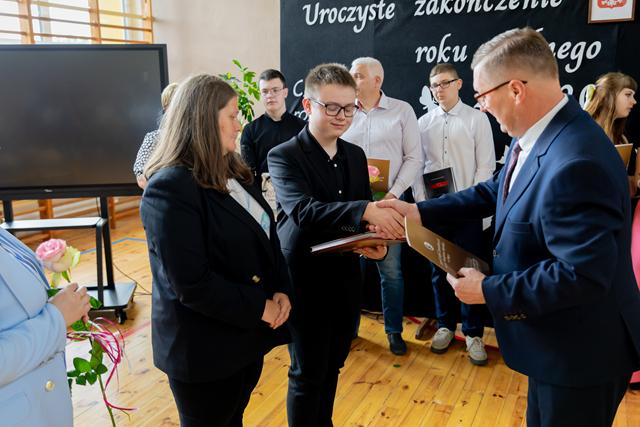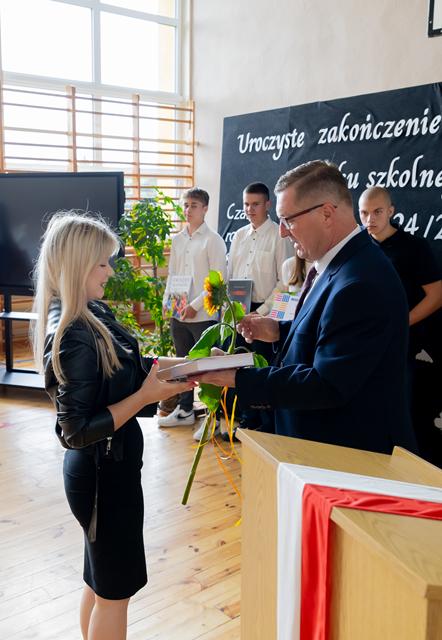 W dalszej części uroczystości Dyrektor Stanisław Kłaniecki w asyście wicedyrektora Przemysława Kuchowicza dokonał wręczenia dyplomów i nagród za wyniki w nauce, zachowanie, aktywną pracę na rzecz szkoły i osiągnięcia sportowe.