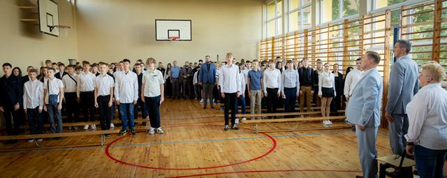 Część oficjalna uroczystości rozpoczęła się od wprowadzenia sztandaru szkoły i odśpiewania hymnu państwowego, po czym głos zabrał Dyrektor szkoły - Stanisław Marek Kłaniecki.