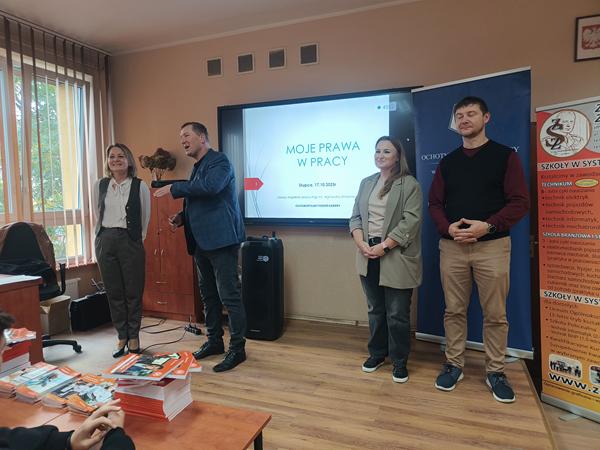 17 października uczniowie klas 1A, 1B i 1D wzięli udział w spotkaniu informacyjnym pod hasłem „Moje prawa w pracy”