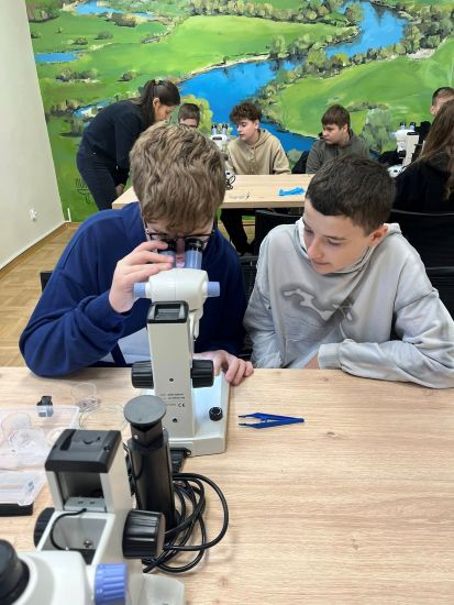 Następnie uczniowie wzięli udział w zajęciach mikroskopowych, podczas których analizowali budowę owadów, zaglądali w zakamarki ich skrzydeł, czułków oraz innych delikatnych struktur, które na co dzień umykają ludzkiemu oku.