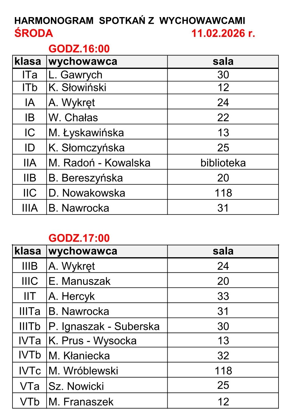Wywiadówka śródroczna klas IIID i IIIE odbędzie się 2 marca 2026 r. (poniedziałek) o godzinie 15:00: