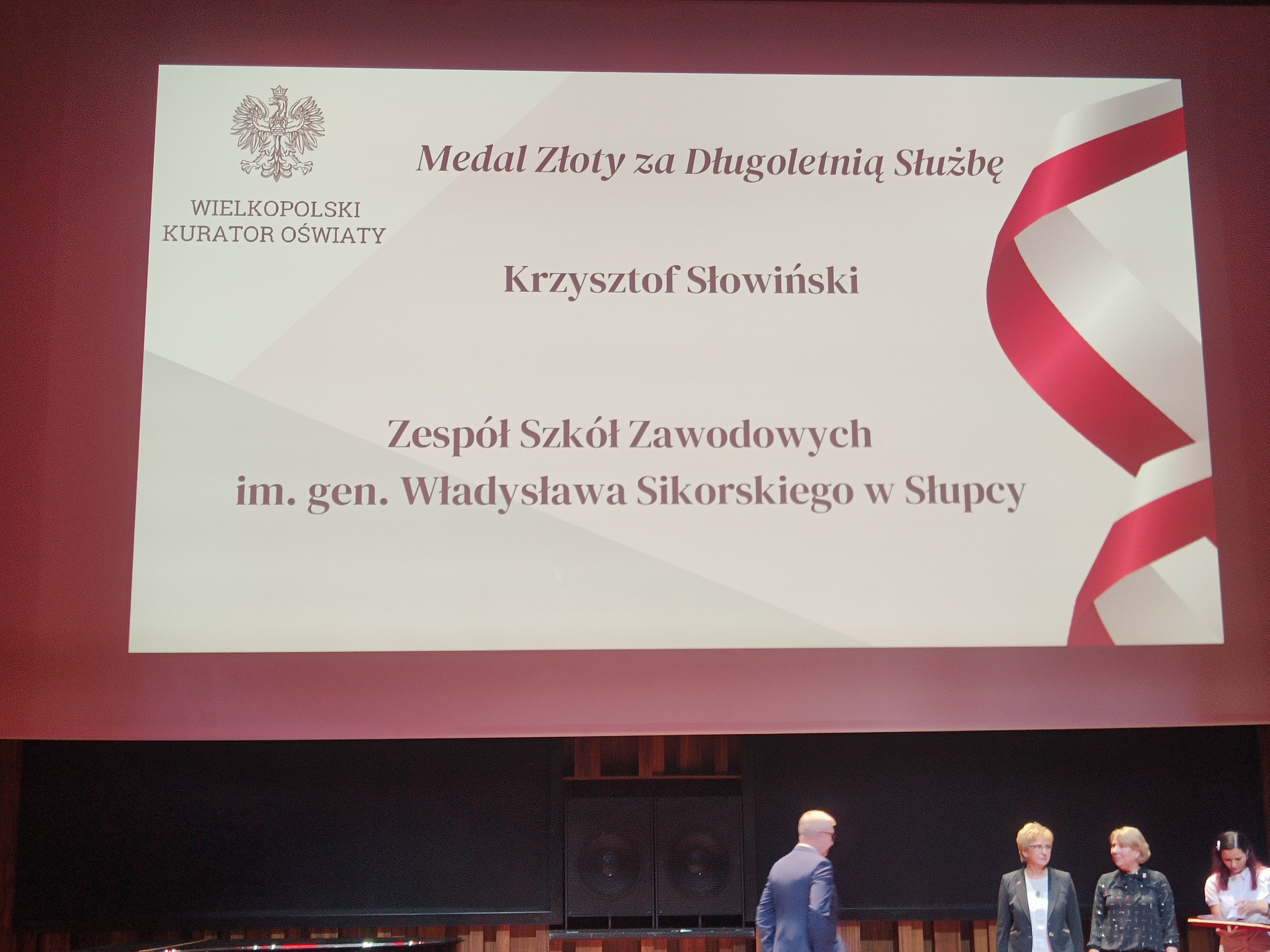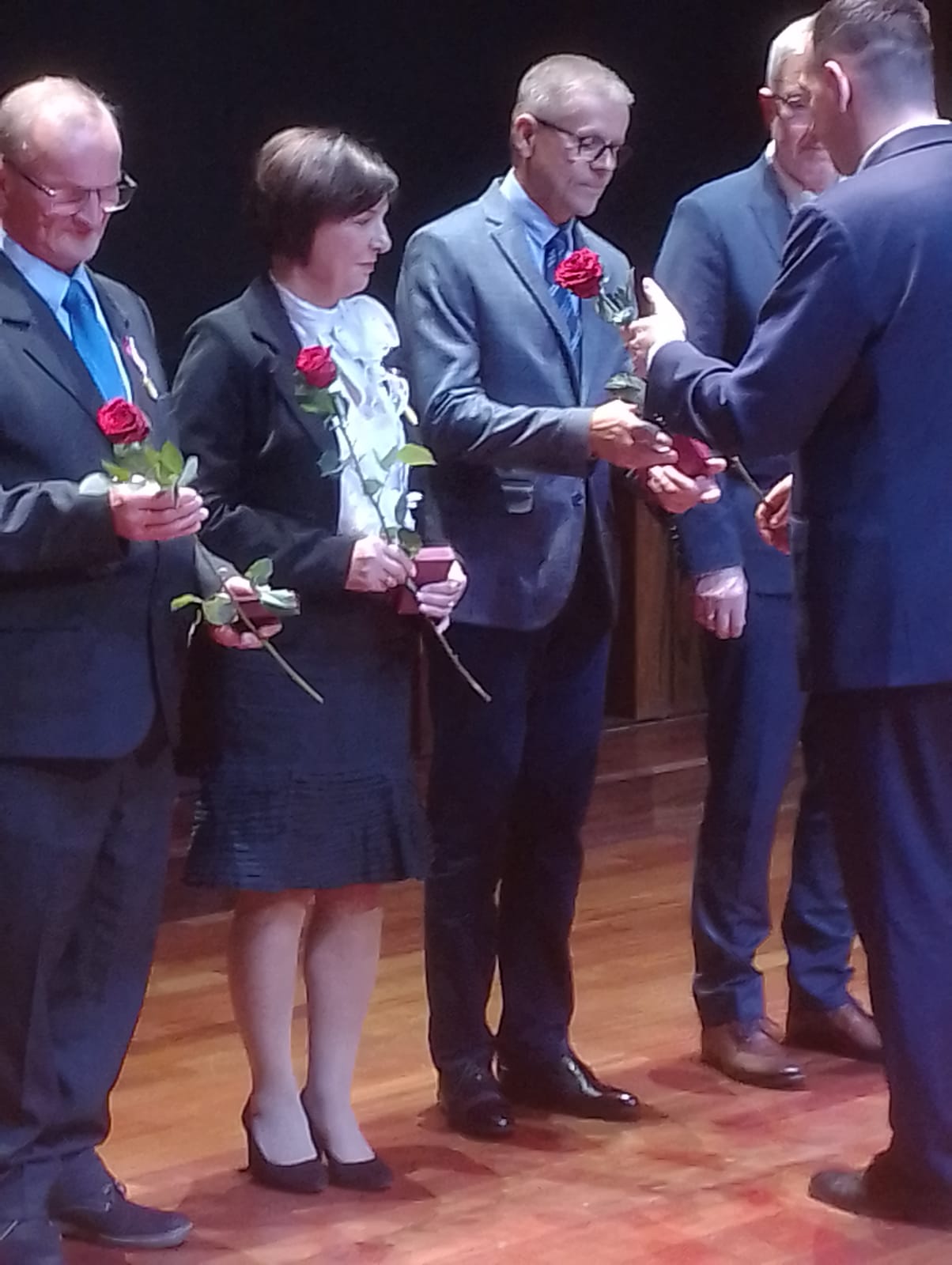 Pan mgr Krzysztof Słowiński został uhonorowany Medalem Złotym za Długoletnią Służbę - najwyższym stopniem odznaczenia przyznawanym przez Prezydenta Rzeczypospolitej Polskiej za wzorowe i wyjątkowo sumienne wykonywanie obowiązków wynikających z pracy zawodowej w służbie państwa.